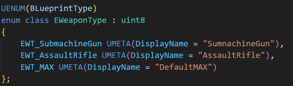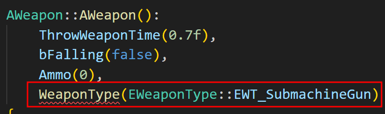 앞으로 사용될 무기 유형에 대해서 선언해주자.