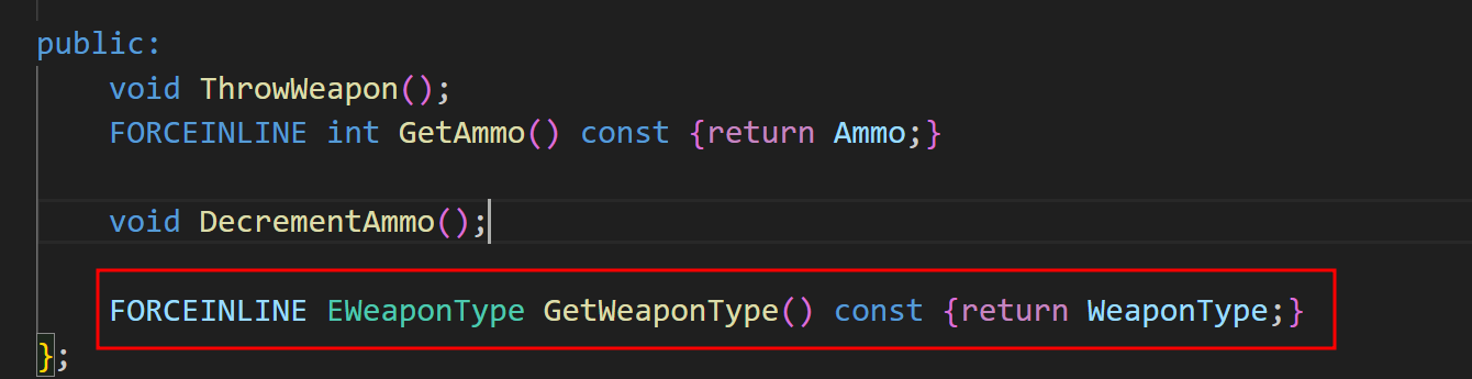 해당 내용은 private에서 선언했지만 다른 클래스에서도 사용해야 하는 내용이기에 Public 섹션에서 getter() 함수도 만들어주자.