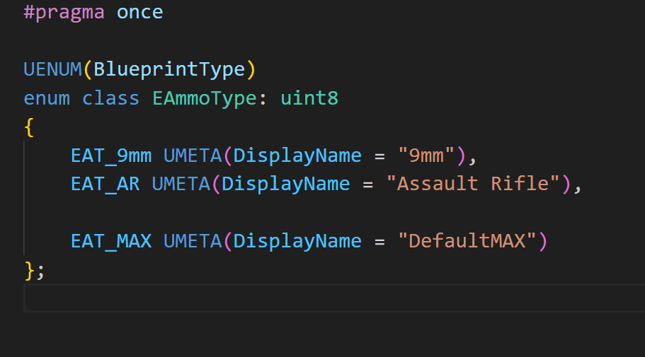 이에 아에 따로 헤더를 생성하여 거기에 총알 유형에 대한 enum 클래스를 선언해주자.
