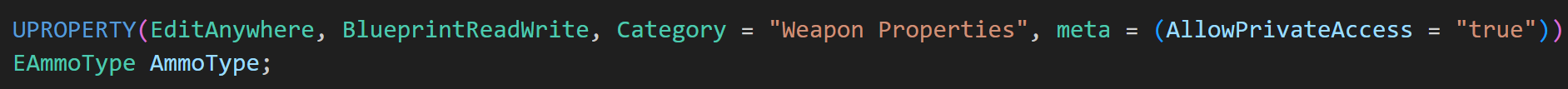 먼저 기존 ShooterCharacter 클래스의 헤더에 있던 총알 유형에 대한 enum 클래스가 Weapon 클래스에서도 사용해야할 필요가 생겼다.
