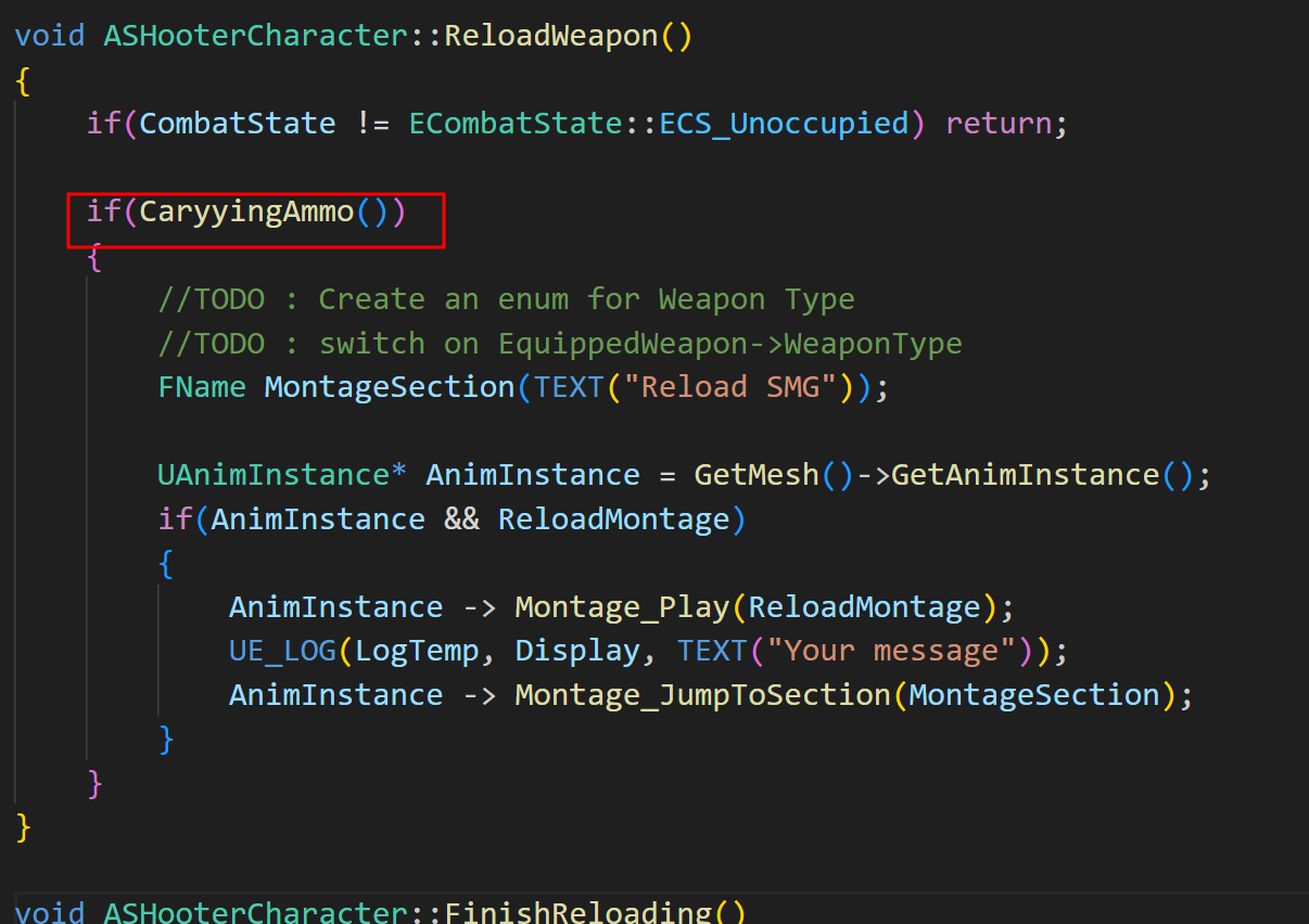 이제 해당 함수를 기존의 ReloadWeapon() 함수에 호출해주자.