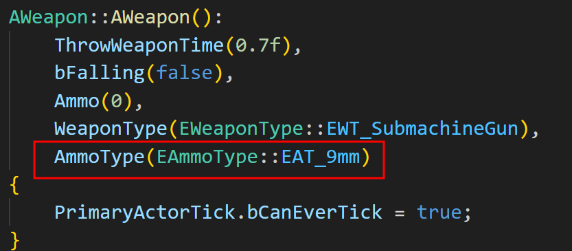 이제 Weapon 클래스에서 해당 유형에대한 변수 선언 및 초기화를 해주자.