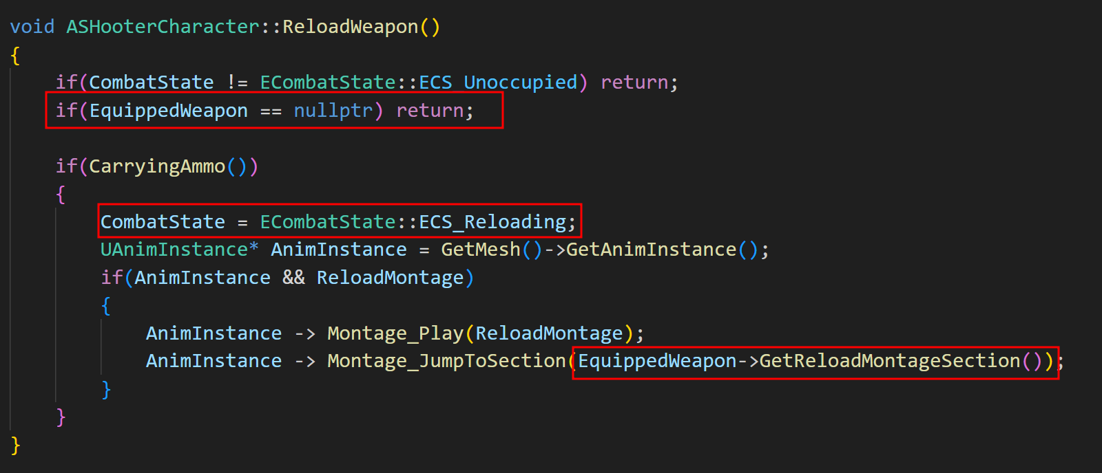 그리고 CombatState에 대해서도 장전중임을 알리는 ECS_Reloading으로 할당해주는 부분을 추가하자.