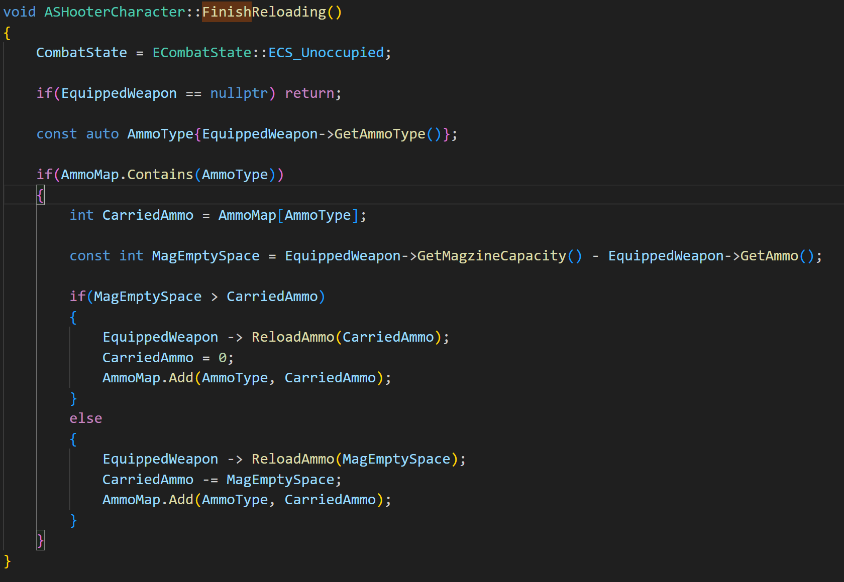 그리고 CarriedAmmo에 해당 양만큼 감소시키고, 해당 값으로 AmmoMap을 갱신해주자.