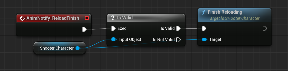 Shooter Character를가져오고 유효 하다면 알림을 통해서 Finish Reloading 함수를 호출해주자.