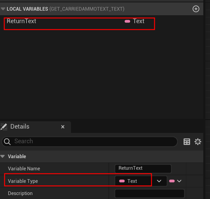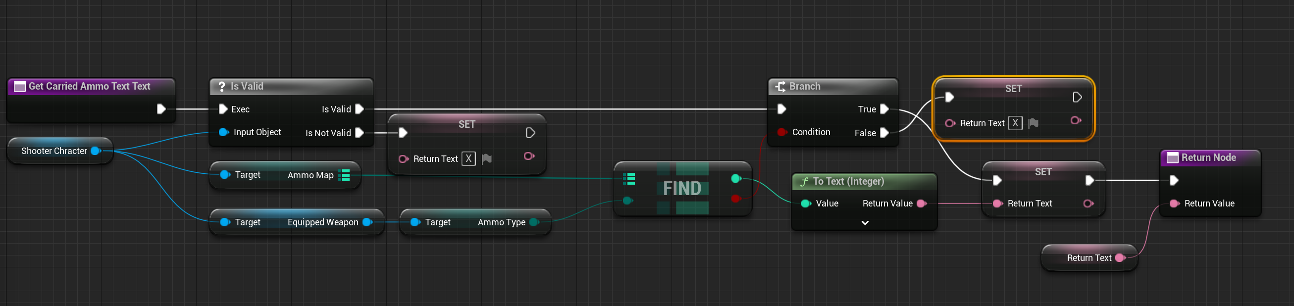 그리고 로컬 변수로 Carried Ammo 개수에 대한 Text 타입 변수를 만들어 주자.