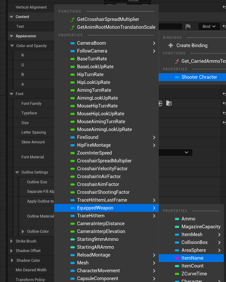 이어서 Weapon Name에 대해서도 바인딩 작업을 해줄 것이다.