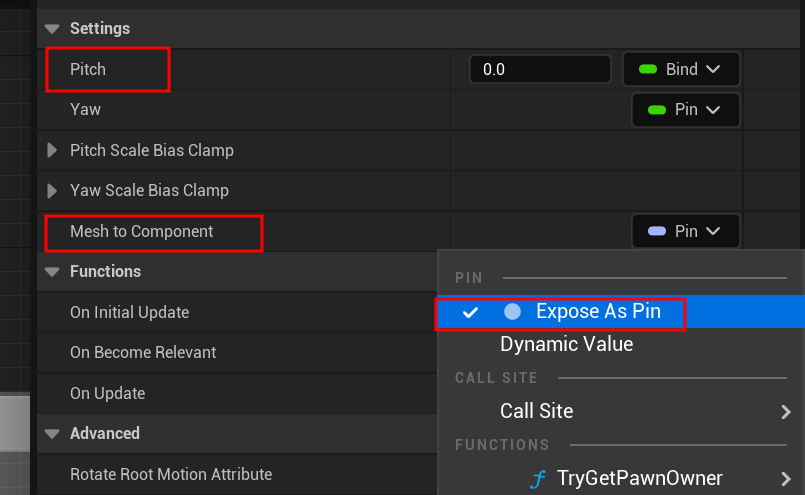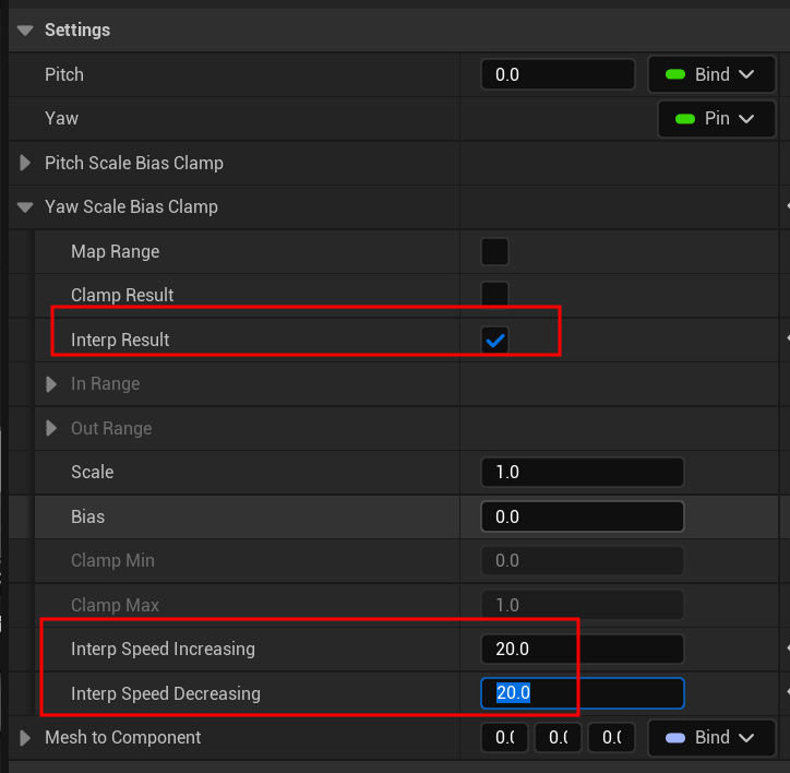 그리고 Yaw 값 Interp Result의 체크를 활성화하여 Interp Speed 값을 20씩 할당해주었다.