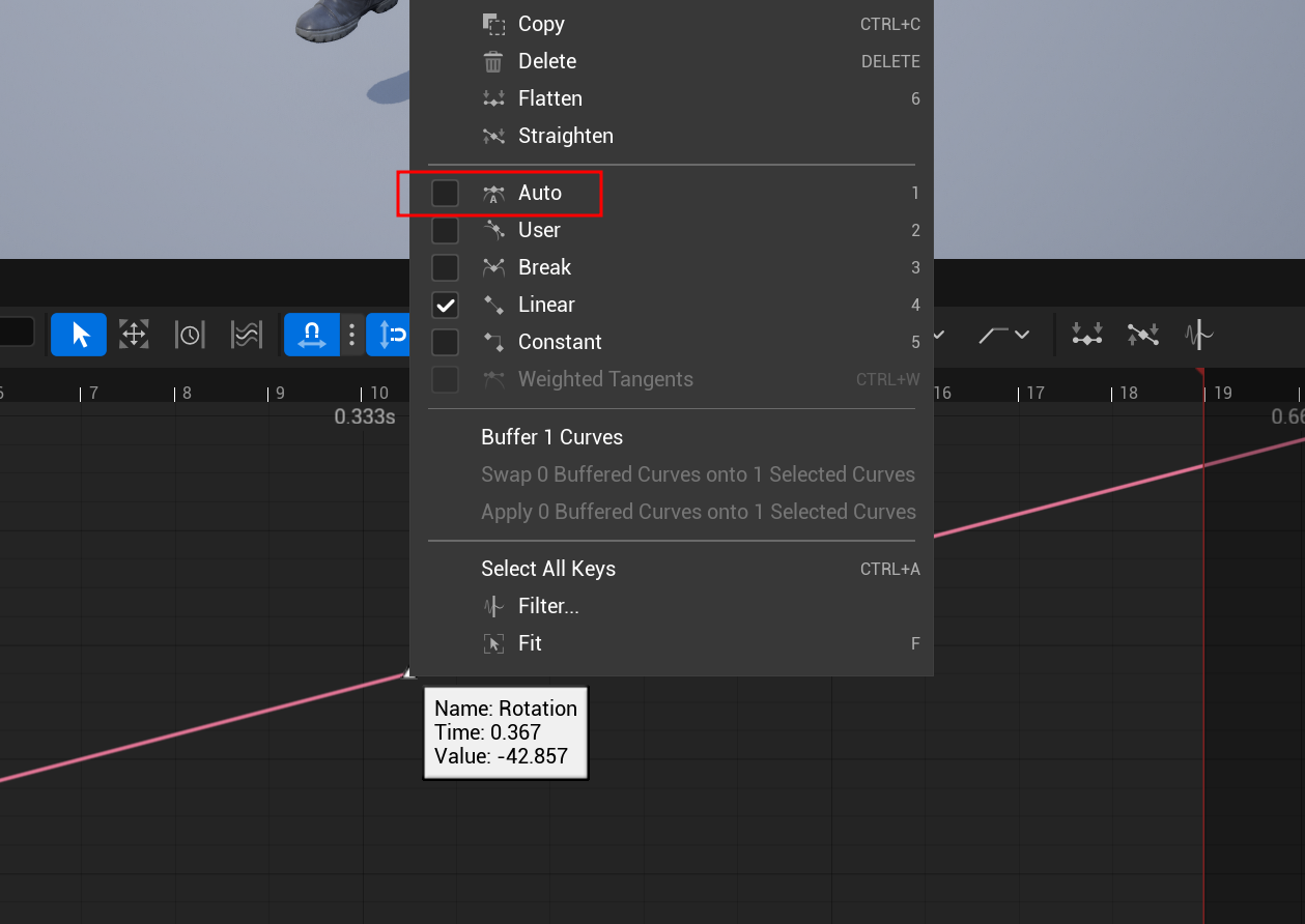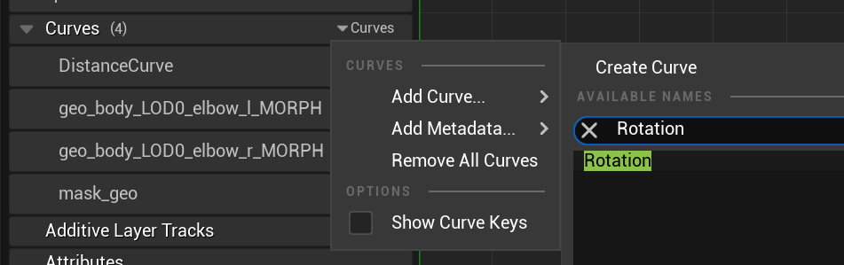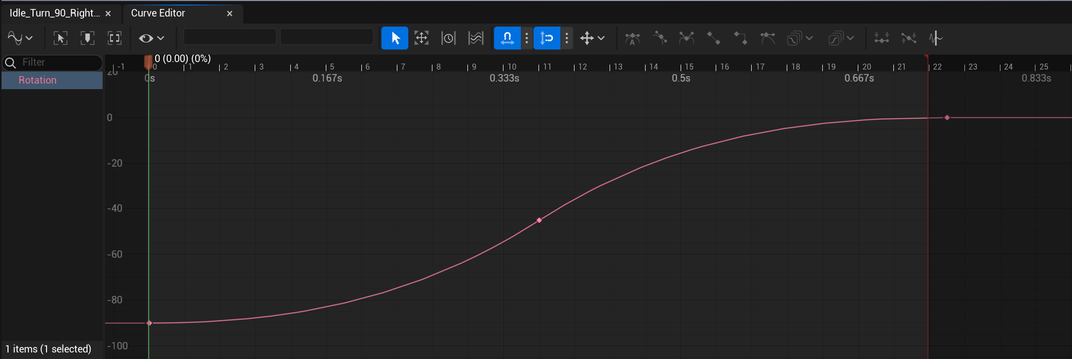 커브의 경우 이미 만든 Rotation을 그대로 선택해서 키를 설정해주자.