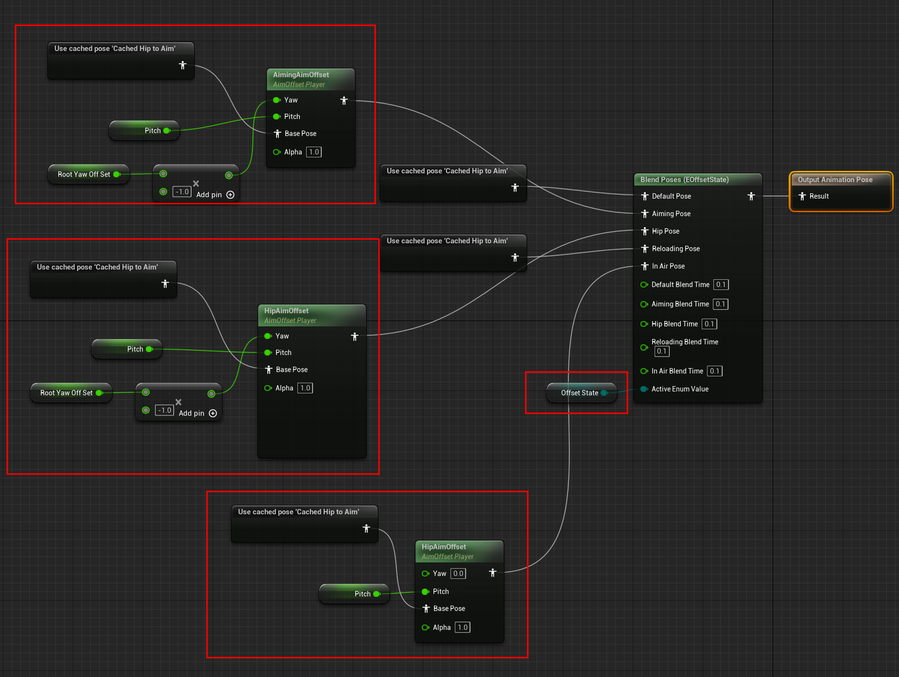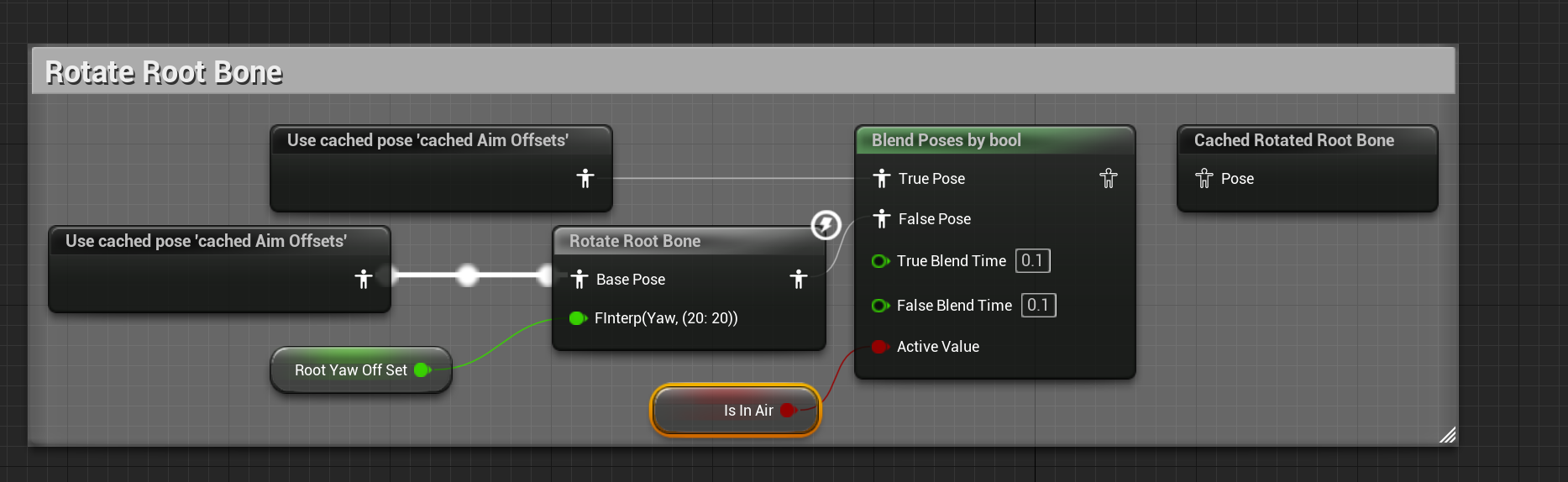 공중에 있을 때는 Rotate Root Bone을 거치지 말고 Aim Offsets을 바로 연결해주자.