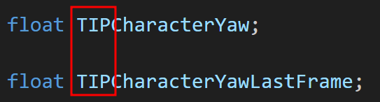 먼저 기존에 사용하던 CharacterYaw 변수와 CharacyerYawLastFrame 변수 앞에 구별을 위해 TIP 단어를 붙여주자.