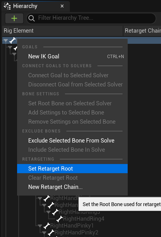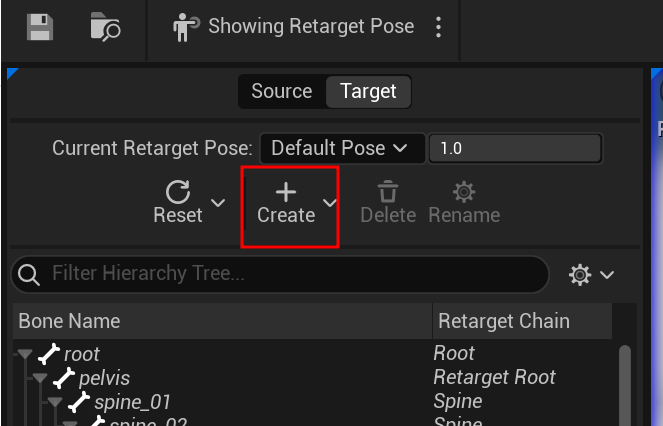 그리고 여기서는 pelvis를 root로 리타겟 해줄 것이다.