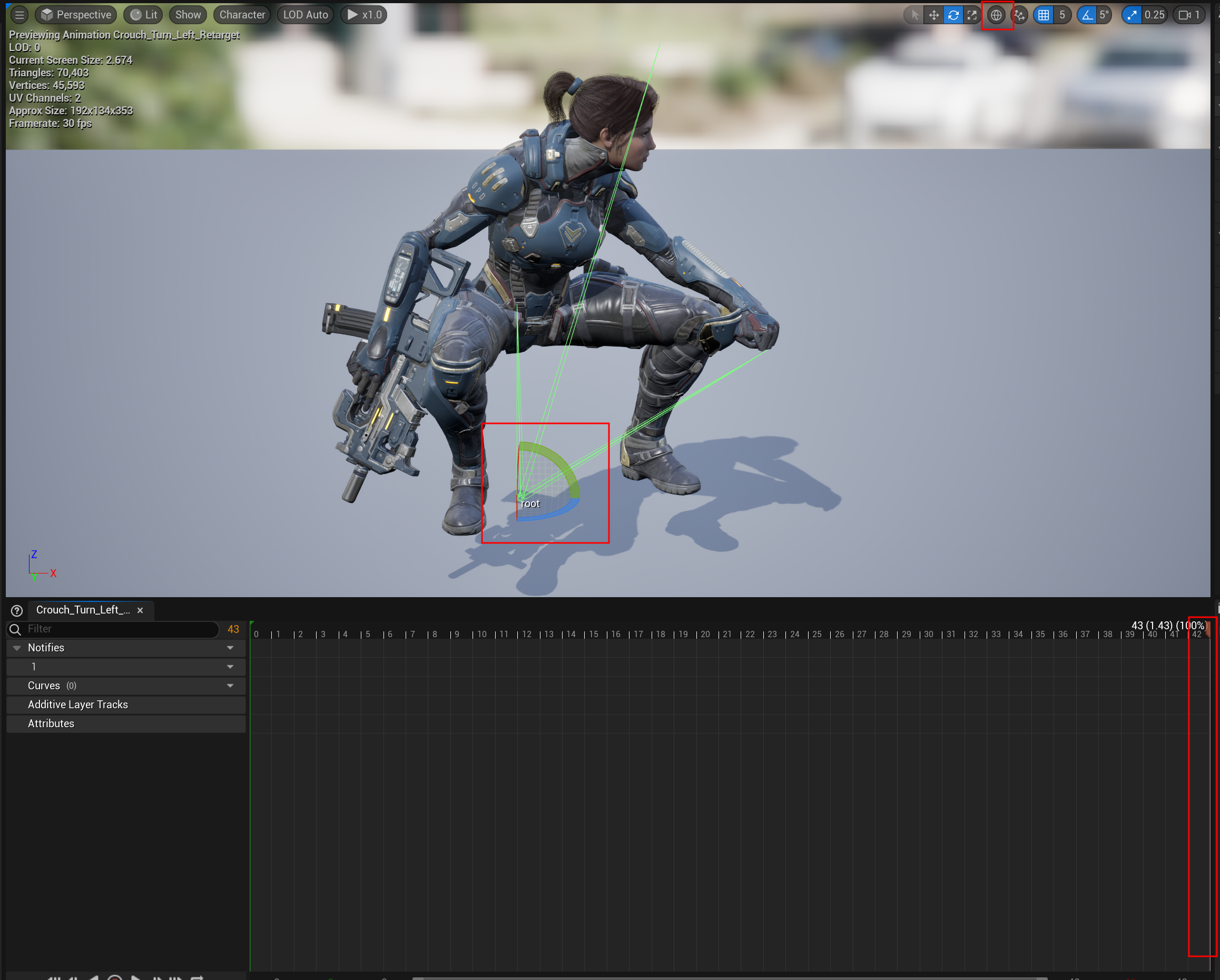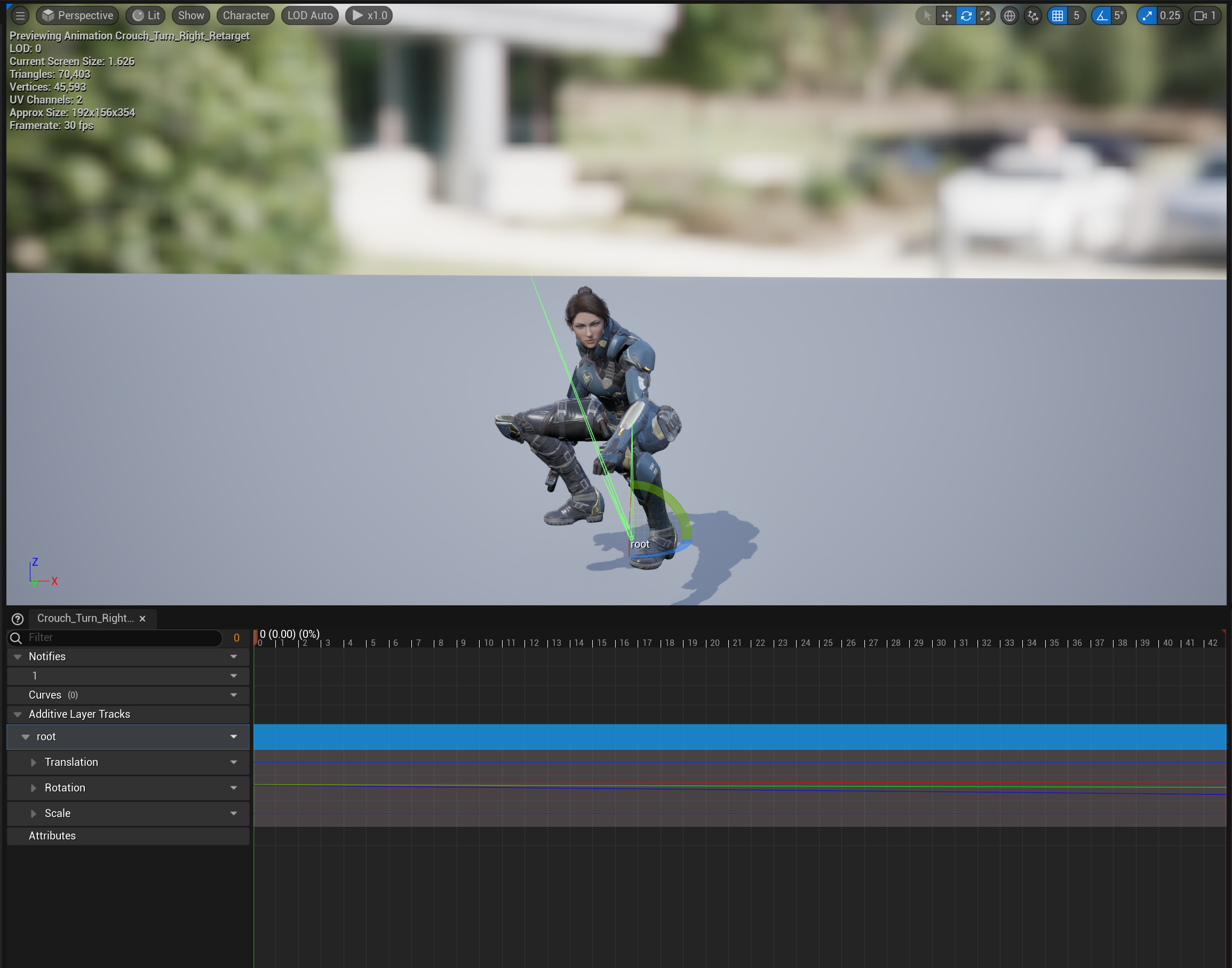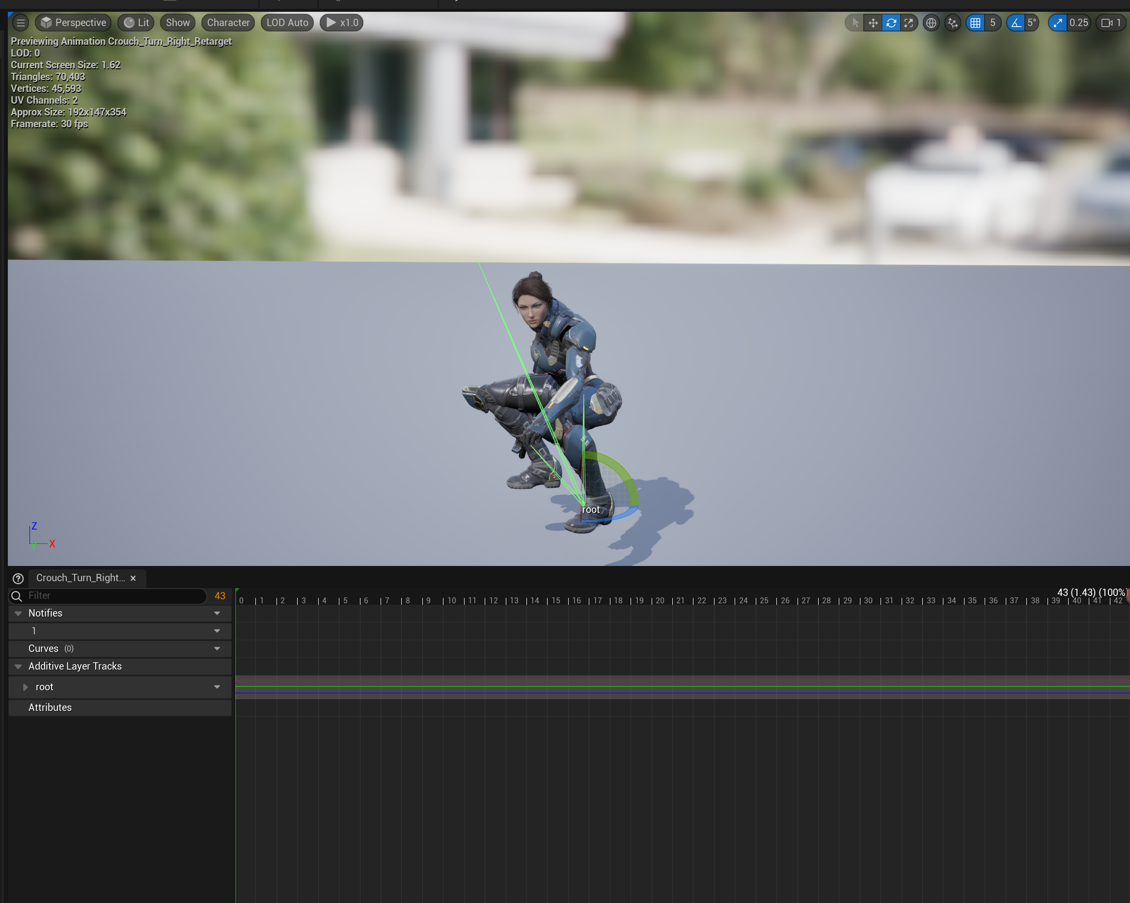 이제 이렇게 얻은 제자리 (이동 x) 회전 애니메이션을 가지고 애니메이션 블루프린트에서 적용시켜줄 것이다.