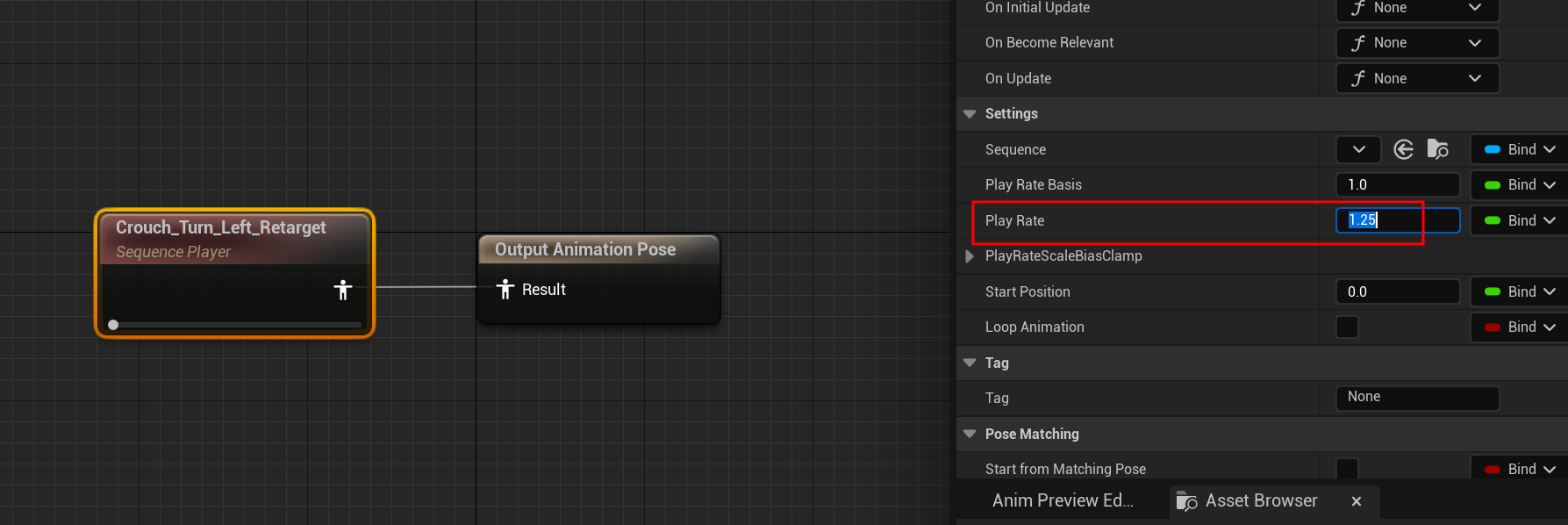 근데 다소 느려보여서 Play Rate를 조절하여 조금 더 빠르게 동작하도록 하였다.