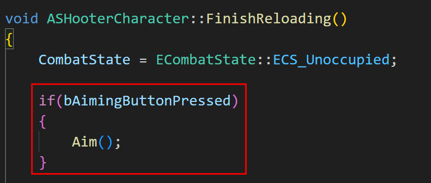 그리고 StopAiming() 함수의 경우 추가적인 호출이 필요한데, 재장전일 때이다.