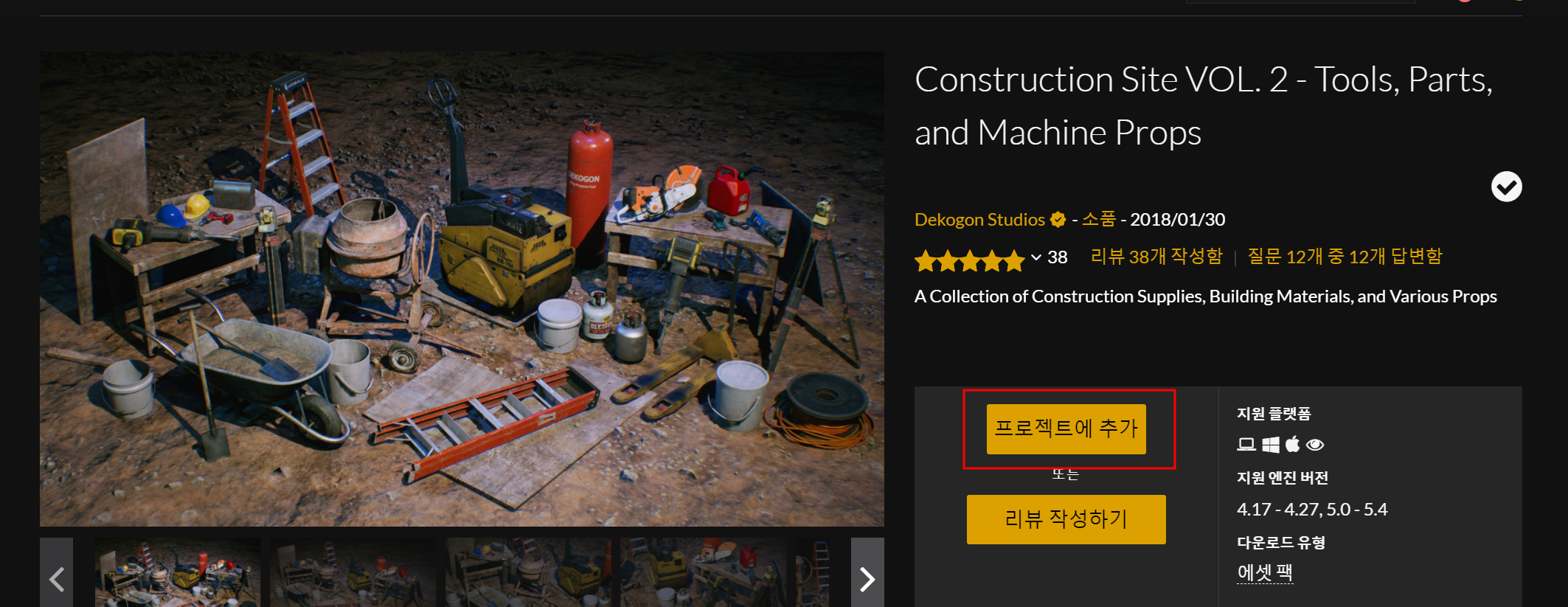 해당 강의에서 다운한 에셋은 현재 내 언리얼 프로젝트 버전과 일치하지 않아 다른 에셋을 임의로 다운로드하였다.