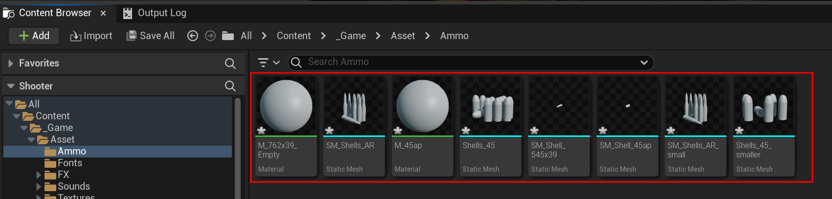 탄약은 아니지만 공구의 메테리얼을 사용하기 위해 해당 에셋을 선택했다.