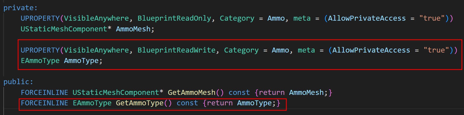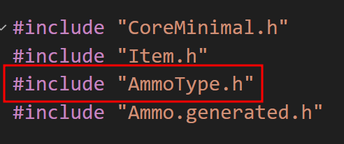 먼저 Ammo 클래스 헤더에 AmmoType 헤더를 추가해줄 것이다.