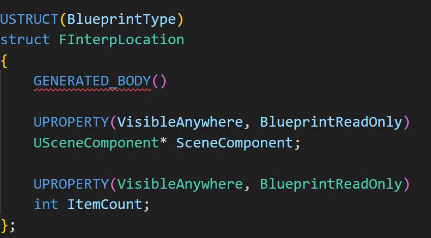 이어서 구조체와 구조체를 기반으로 한 TArray도 선언해주었다.