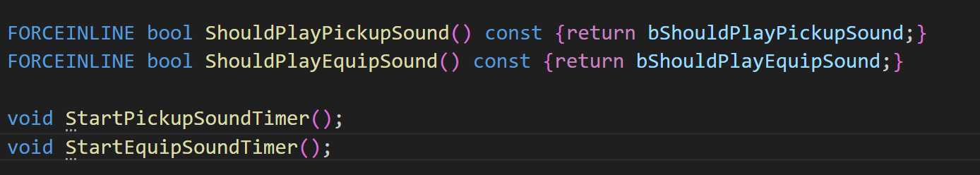 먼저 픽업 및 장착에 대한 사운드와 사운드에 대한 bool 변수,