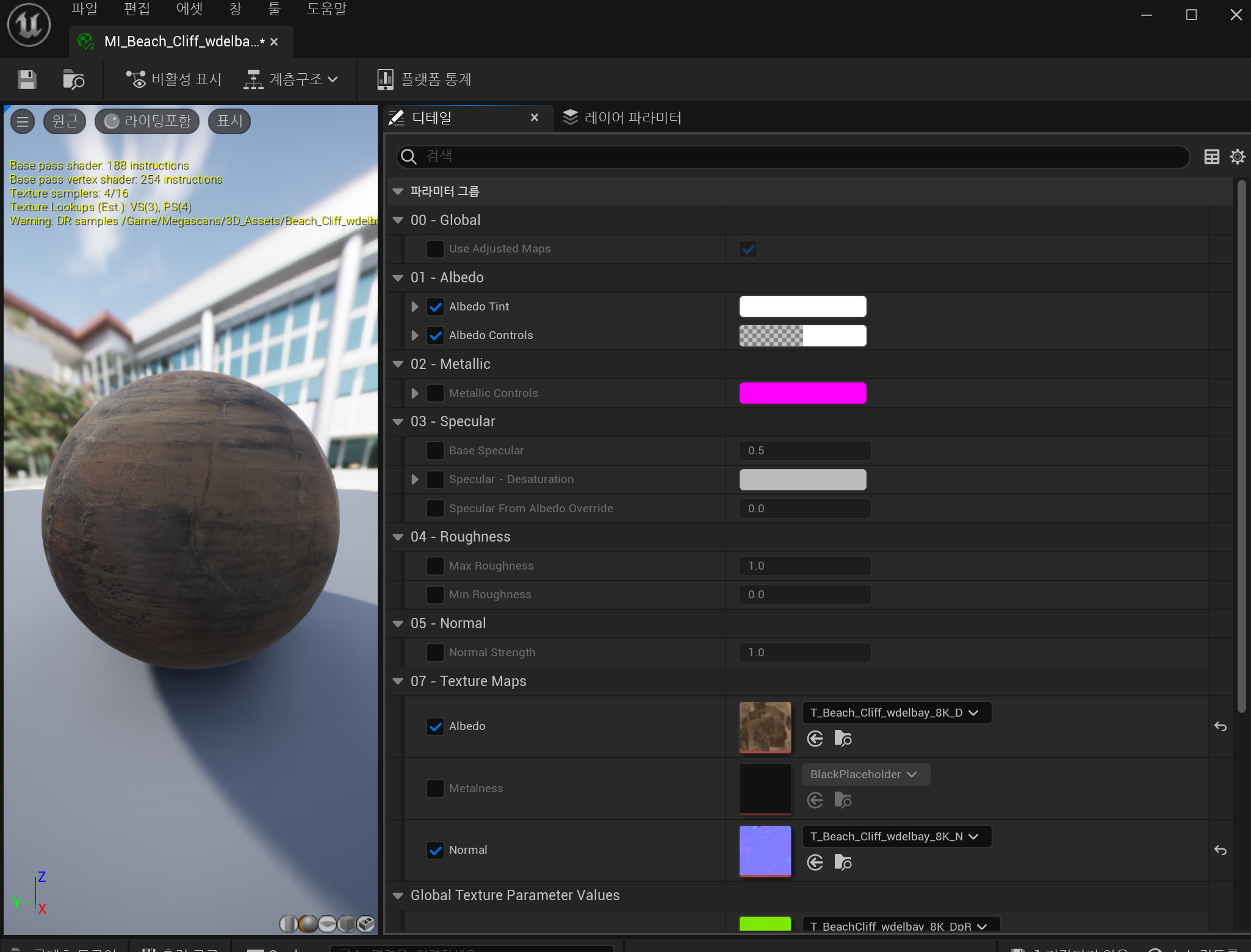 이번 영상에서 확인한 것은 Albedo 부분과 Roughness 부분이다.