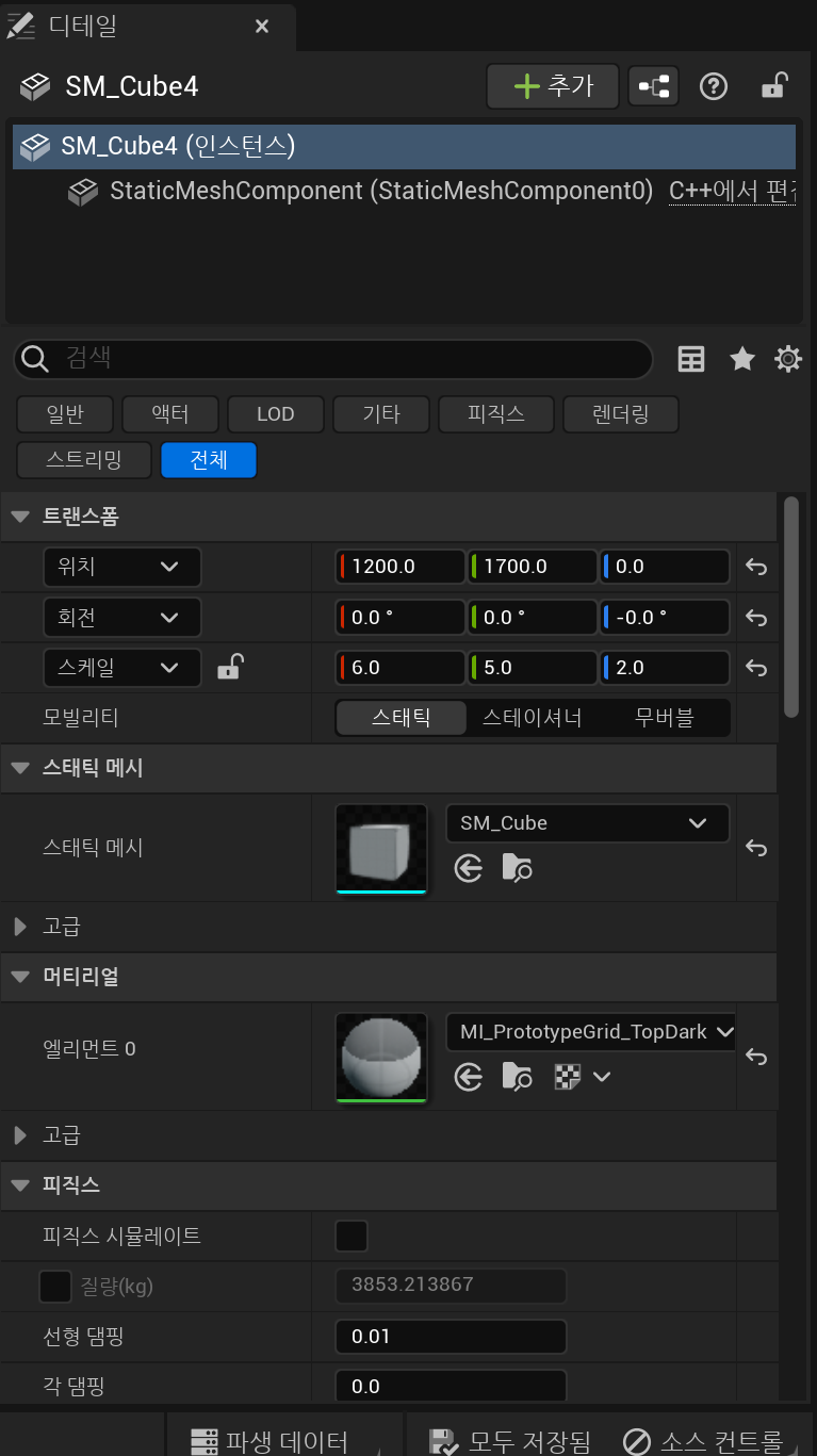 이러한 값은 디테일 패널의 스태틱 메시 패널에서 수정이 가능하다.