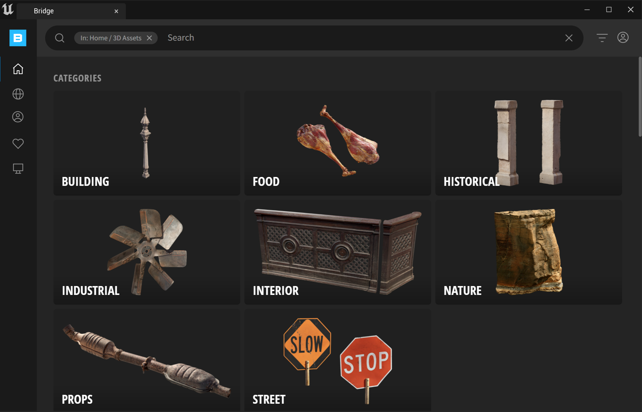 위 화면이 퀵셀 브리지를 열고 왼쪽 항목에서 3D Assets 누른 초기화면이다.