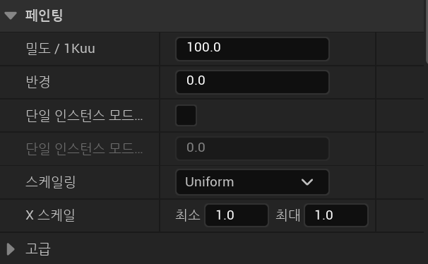 현재 기본값은 최소 1.0 최대 1.0인데 이는 1.0으로 고정시킨 것이다.