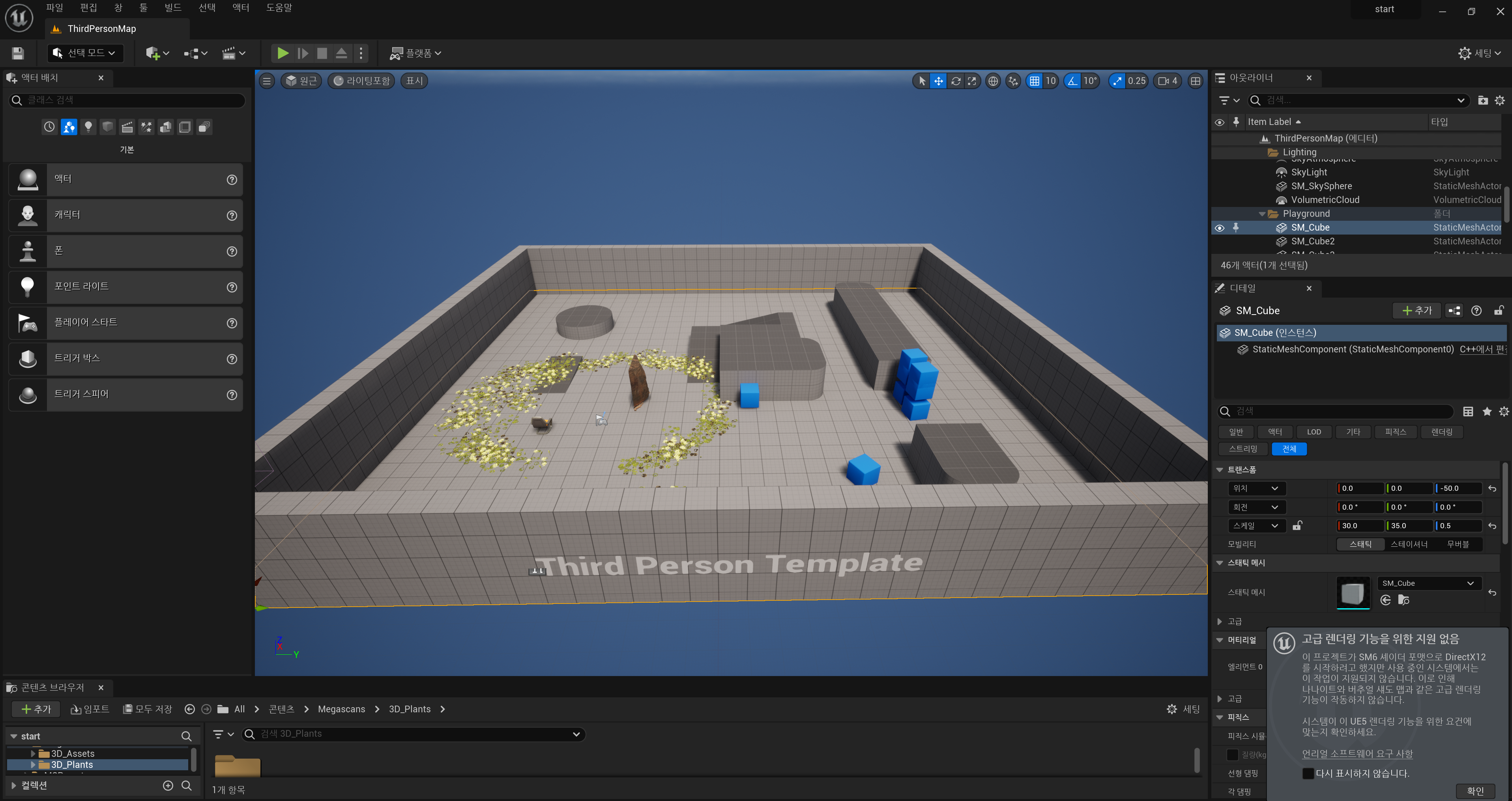 기존 액터(회색 물체) -> 스태틱 메시(Static Mesh) [미완성 액터]