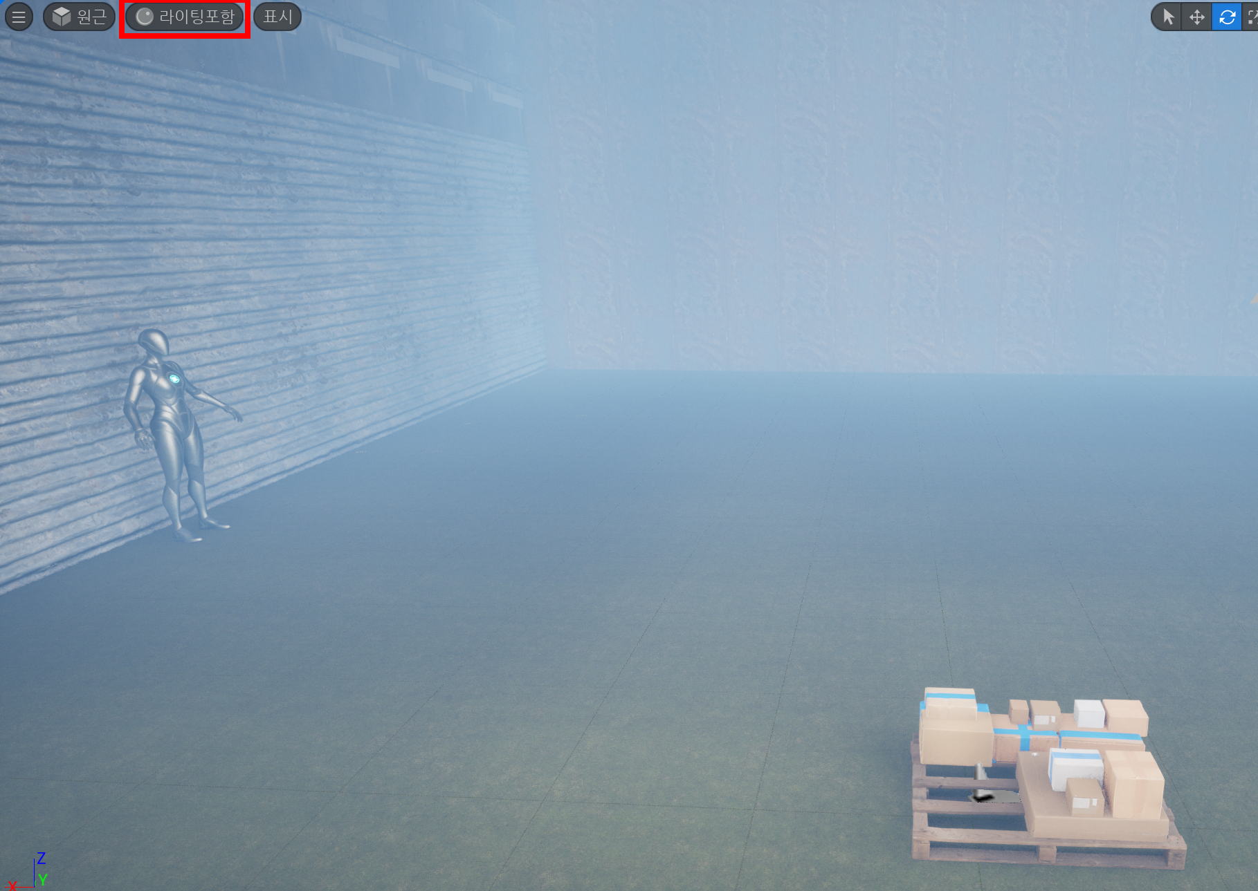 뷰포트의 라이팅 포함을 언릿으로 바꿔주는 것이다.