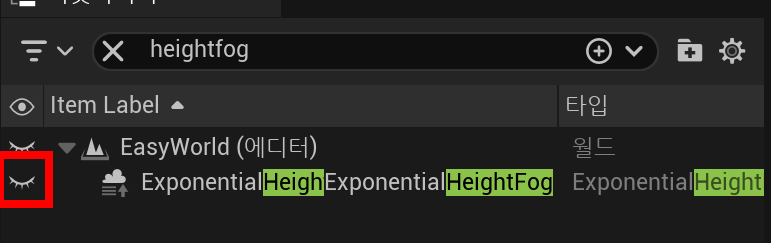 이는 heightfog 기능으로 아웃라이너에서 검색한 후 좌측 눈표시를 눌러서 끄면 깔끔해져서 배치하기에 수월해진다.