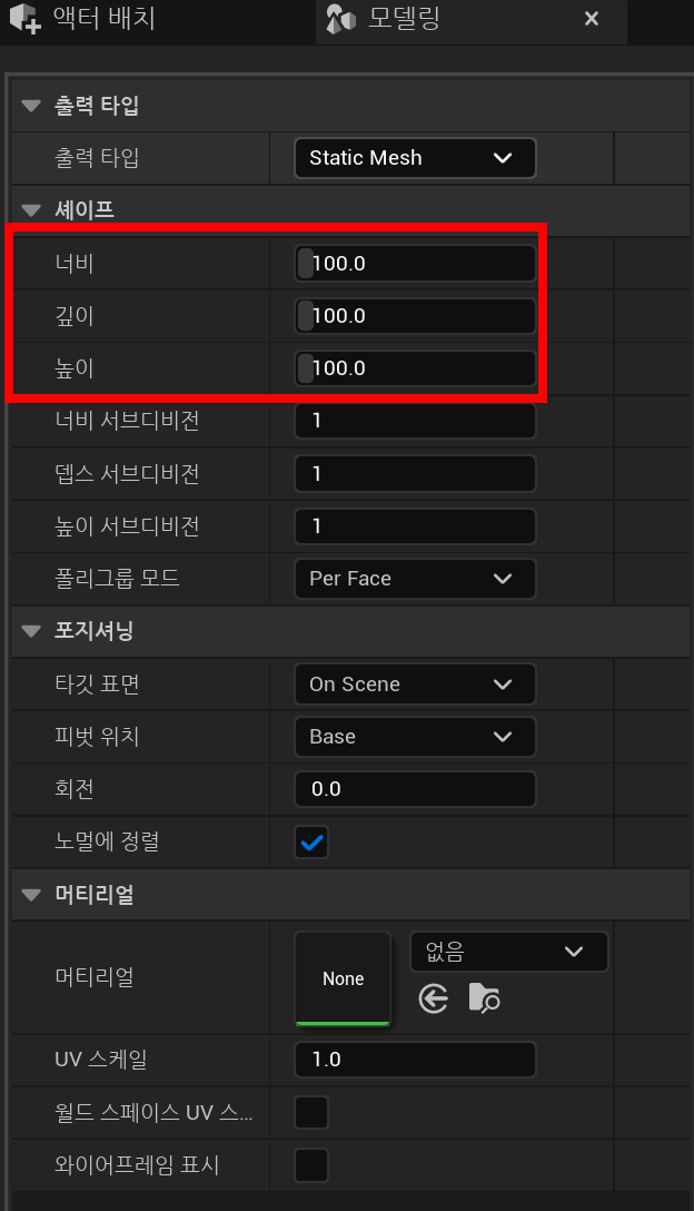 따라서 만약 벽면을 만든다고 가정할 때, 액터 배치로 하는 것보다 새롭게 모델링을 만드는 것을 권장한다.