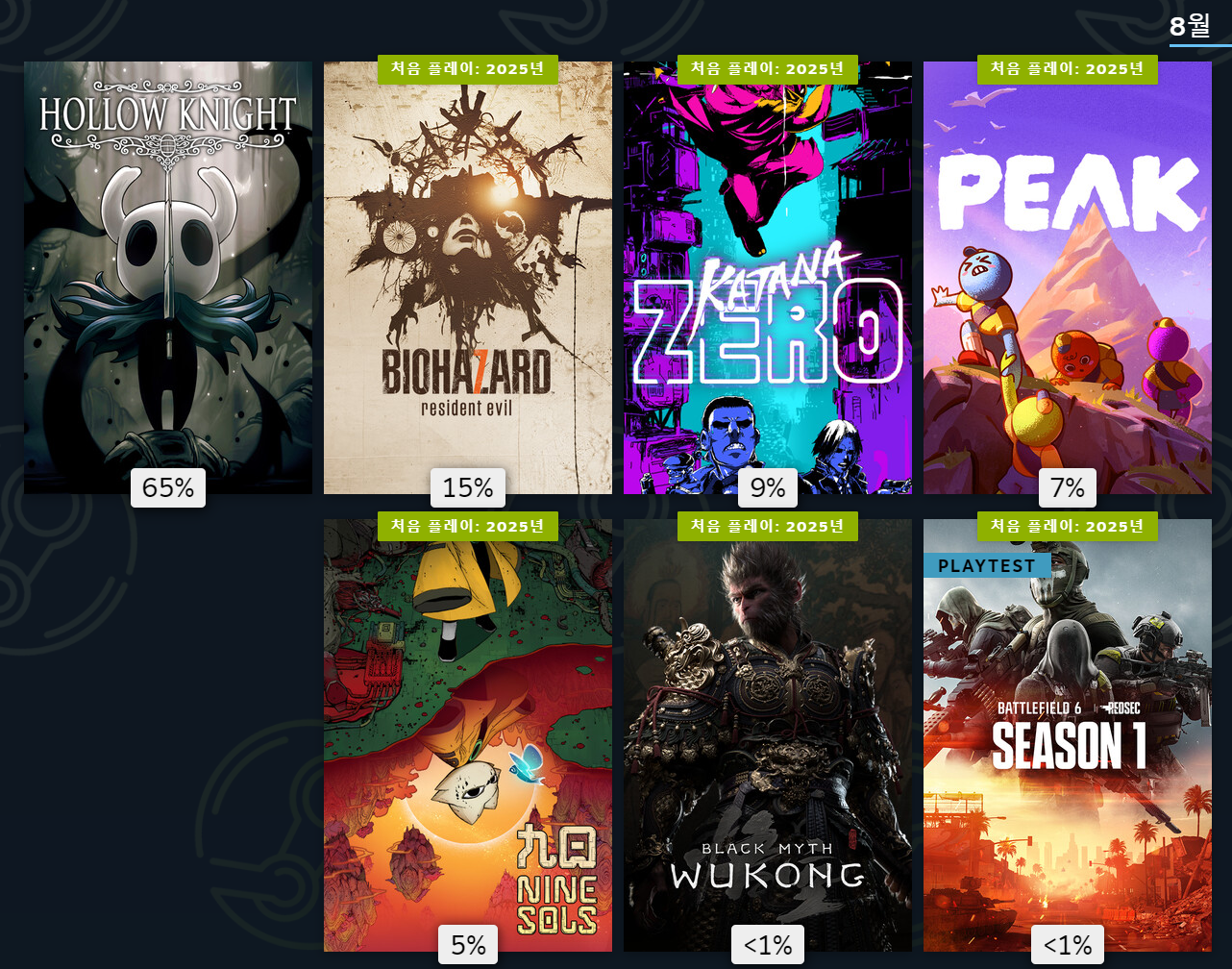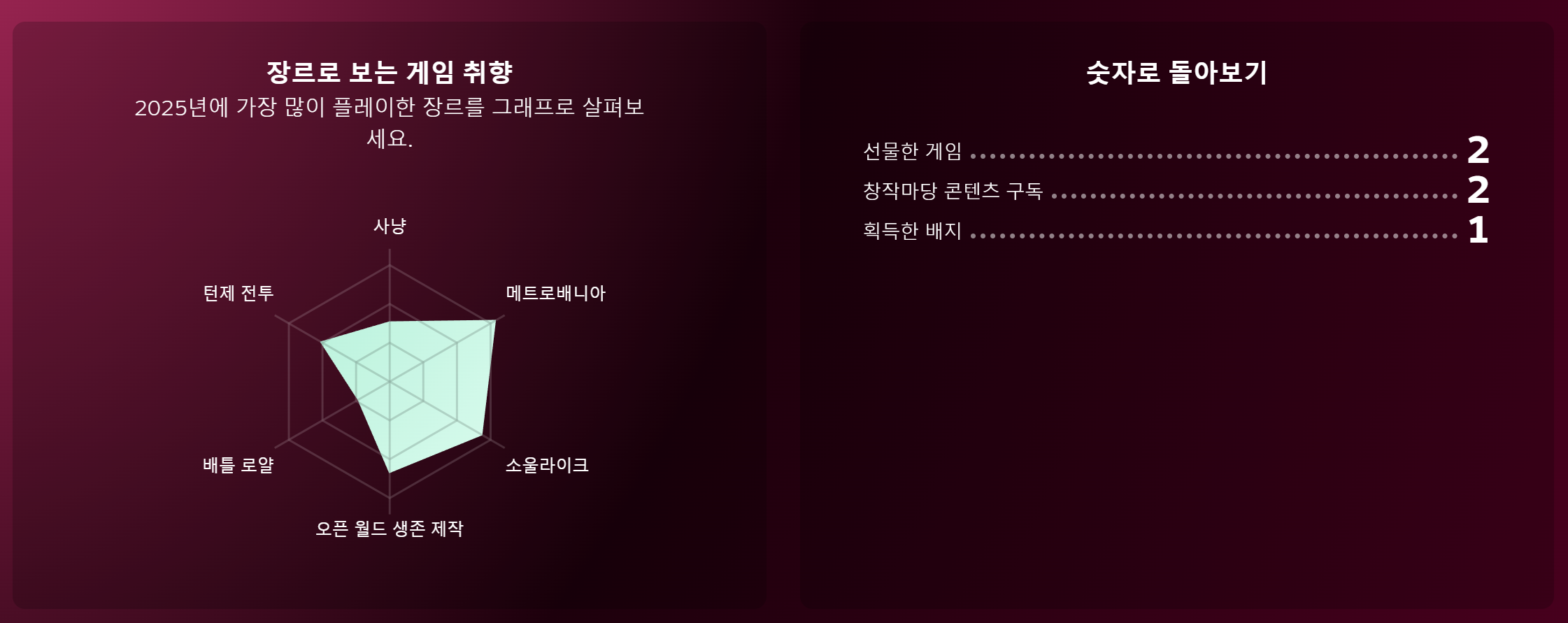 올해는 상반기부터 Split Fiction, Clair Obscur: Expedition 33 등 엄청난 신작게임이 많이 나와서 신작 위주로 플레이하였다.