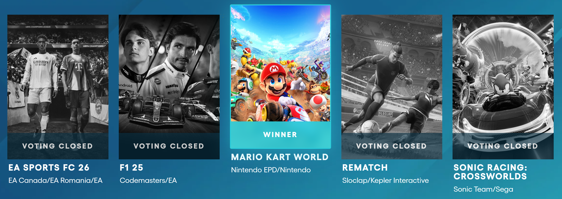 | BEST SPORTS/RACING GAME | MARIO KART WORLD | Nintendo |