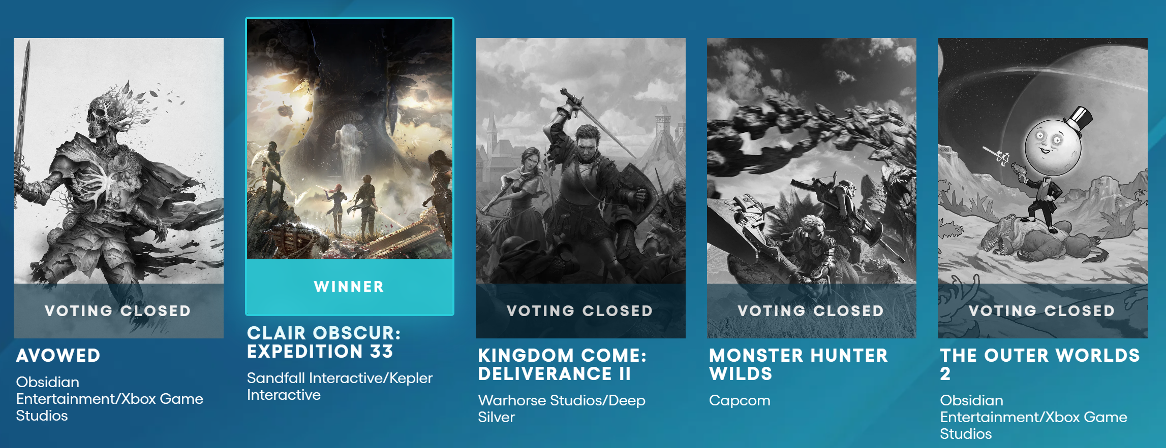 | GAME OF THE YEAR | CLAIR OBSCUR:EXPEDITION 33 | Sandfall Interactive |