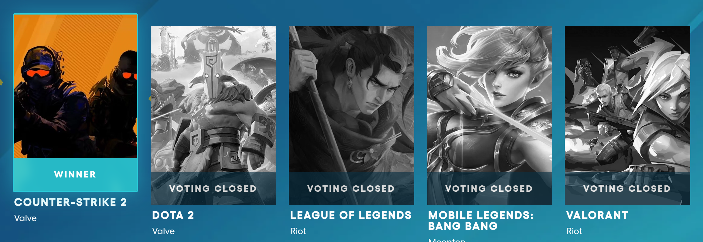수상작은 해외에서는 꾸준히 높은 인기를 보여주는 COUNTER-STRIKE 2가 수상했다.