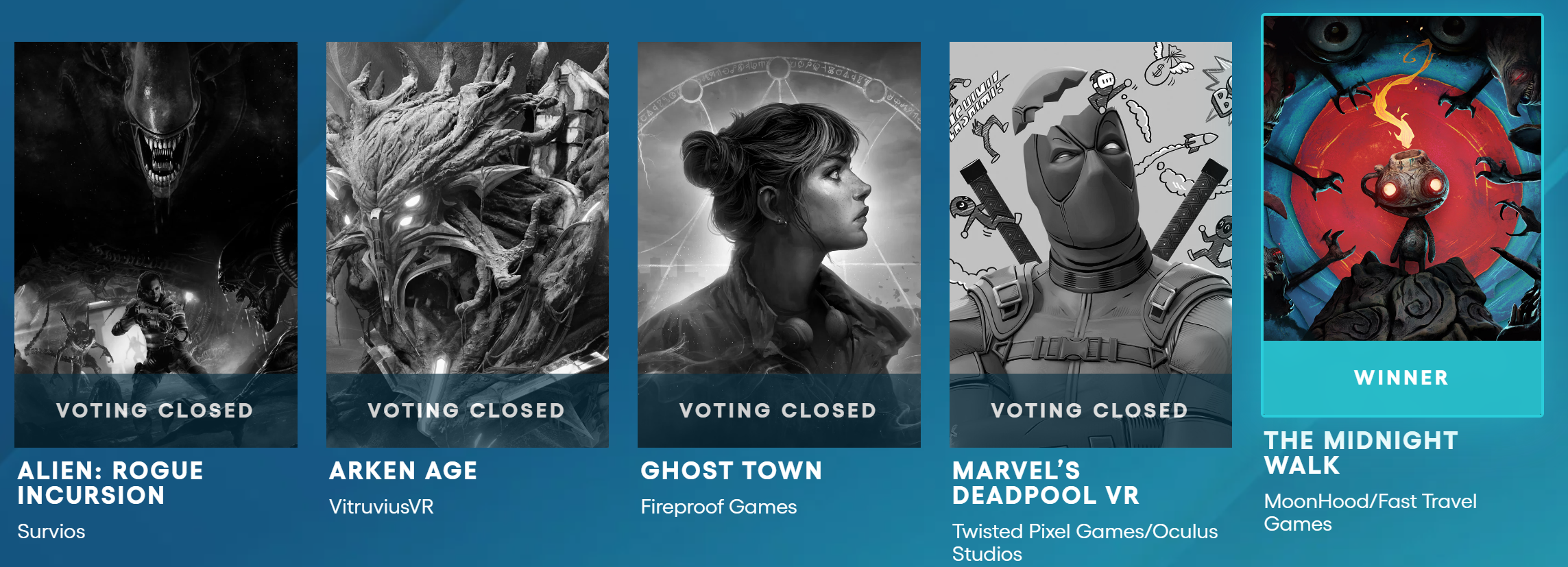 VR 또는 AR 환경에서 가장 뛰어난 게임 경험을 제공하는 게임에 수여되는 VR/AR 게임상이다.